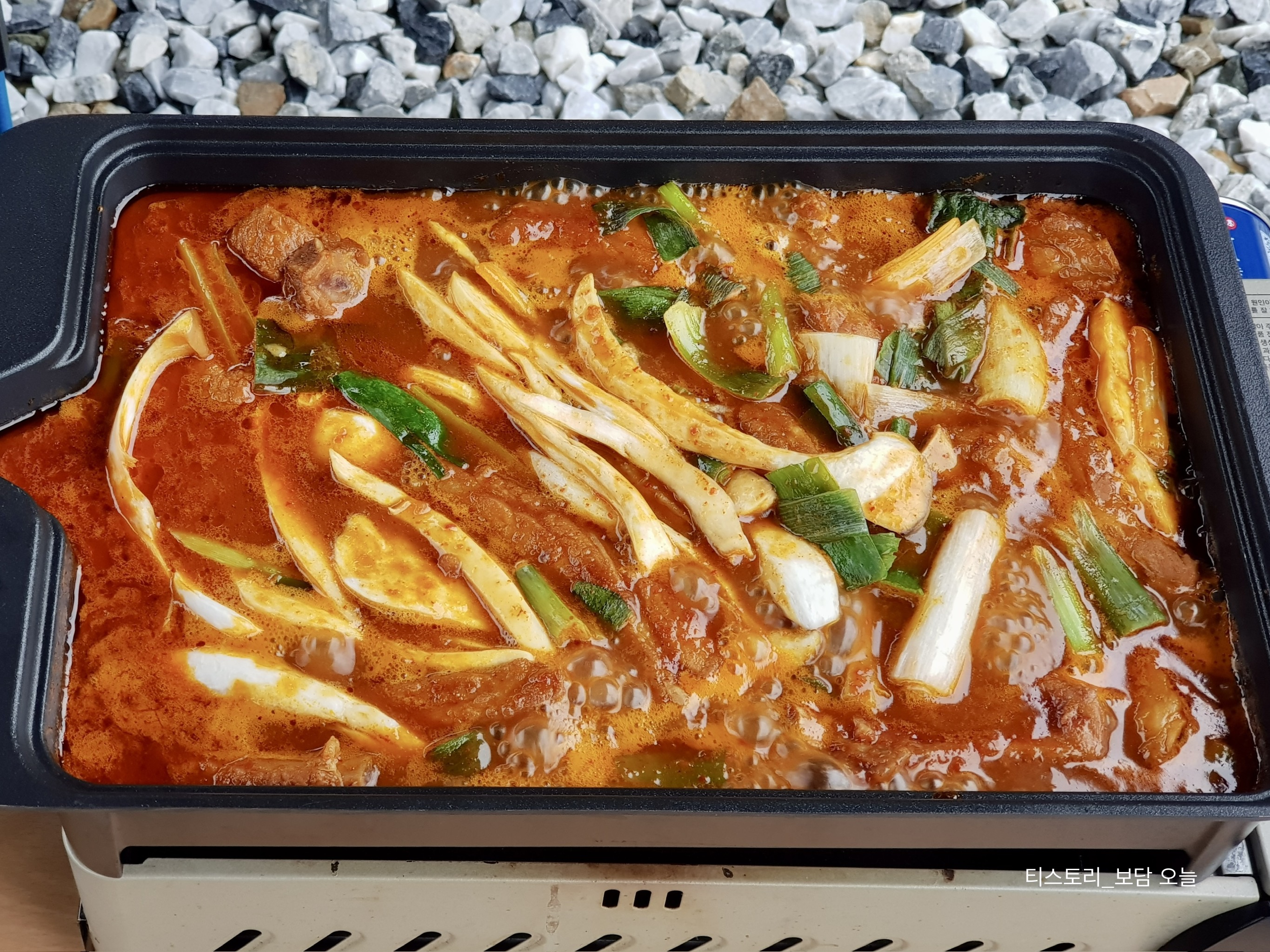 매운 등갈비찜이라 칼칼한 매운 내가 솔솔 올라오네요. 국물 맛을 살짝 보니 신라면보다 살짝 더 매콤한 느낌입니다.