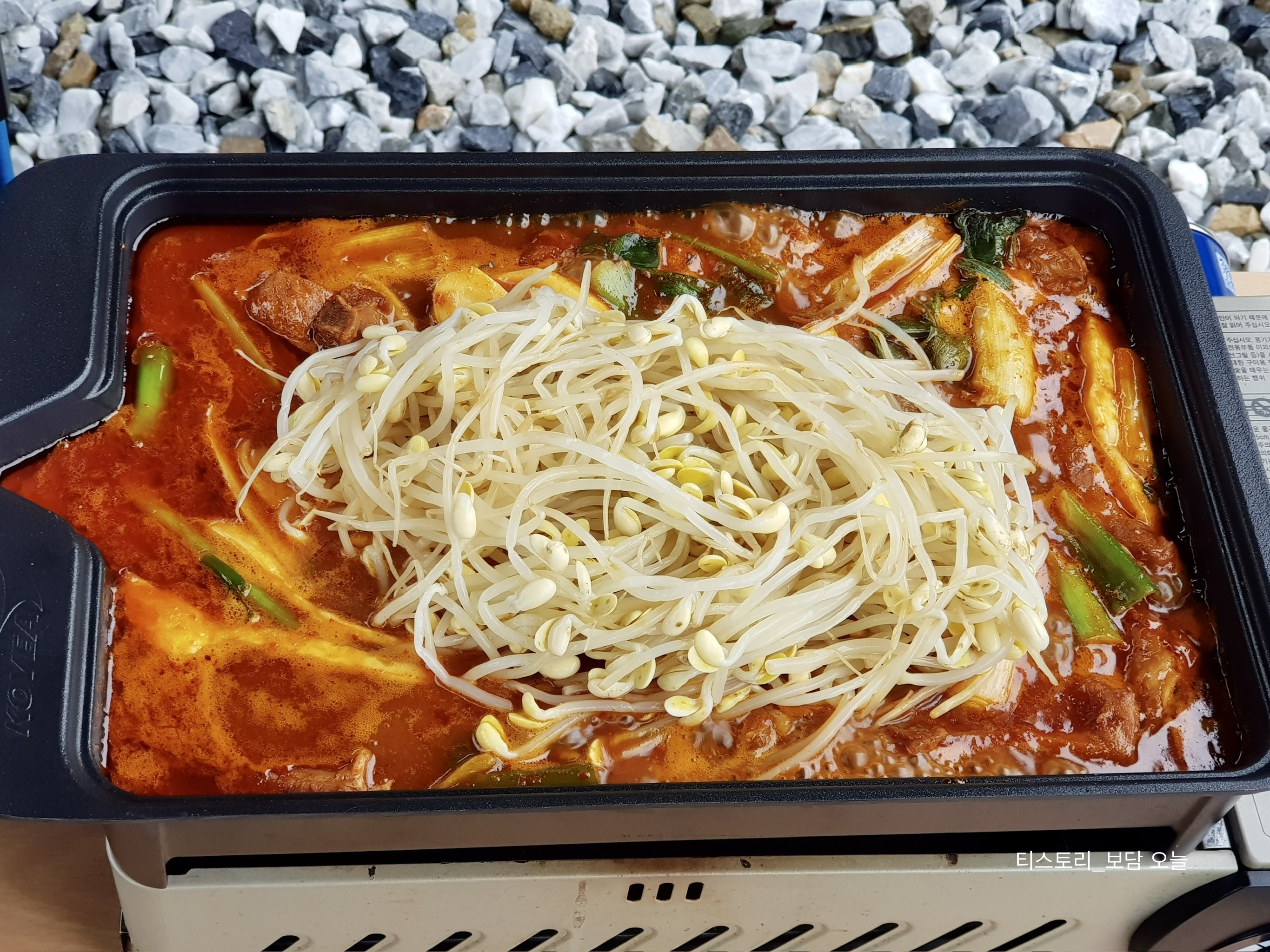 떡과 야채까지 모두 익으면 콩나물을 곁들여 먹으면 됩니다.